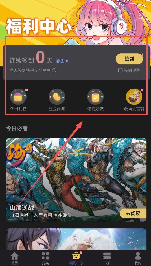 3、然后记得每天领取福利,进入福利中心完成签到,可以积累豆豆奖励,同时邀请好友参与活动也能获得额外的惊喜哦。