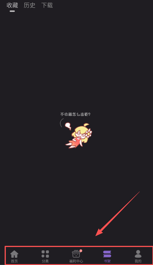4、第四步,打理好你的个人空间,遇到喜欢的漫画就果断收藏,它们会出现在“书架”里方便你下次继续阅读。