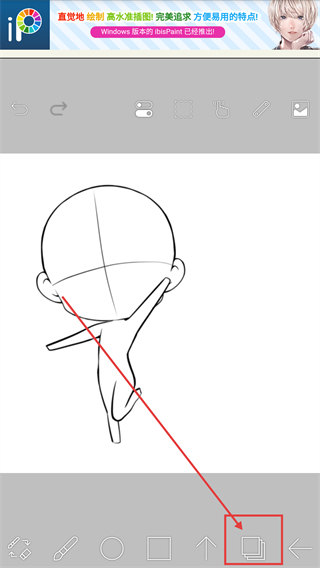 1、在【ibisPaint】绘画编辑界面,点击底部的图层按钮,打开图层管理面板,可查看当前所有绘画图层啦。