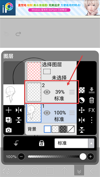 5、新建一个图层2,在图层2上再绘画一遍,然后将图层透明度调至15%