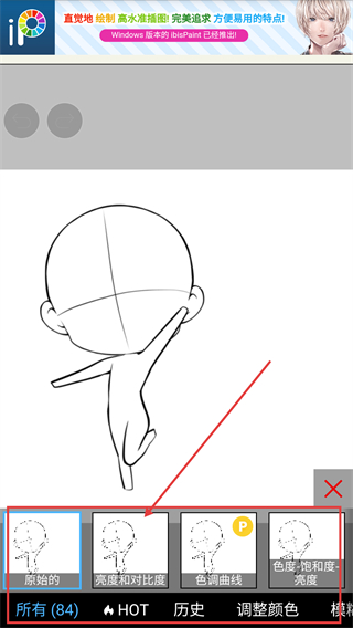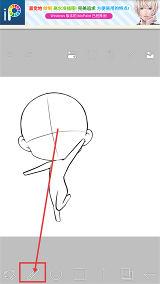 1、在ibisPaint绘画界面,点击底部的画笔按钮,就能展开工具菜单选择需要的编辑工具啦。