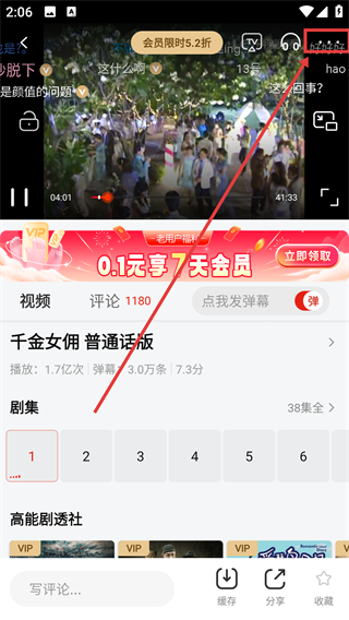 2、在剧集播放页点击右上角的更多按钮,就能打开操作菜单,找到各类播放相关的功能选项哦。