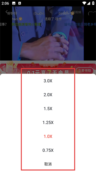 4、在倍速选择界面里,可挑选【3.0X】【2.0X】等不同倍速,选好就能切换播放速度啦。