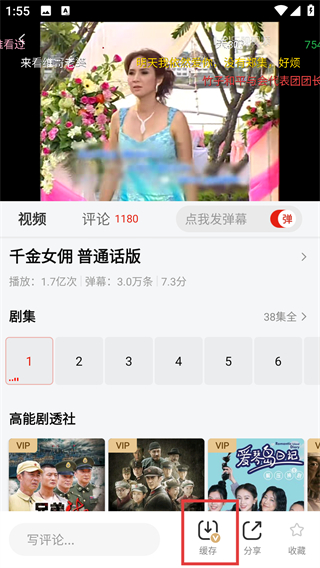 2、在剧集播放页点击底部的【缓存】按钮,就能尝试缓存剧集内容,不过这是会员专属特权哦。