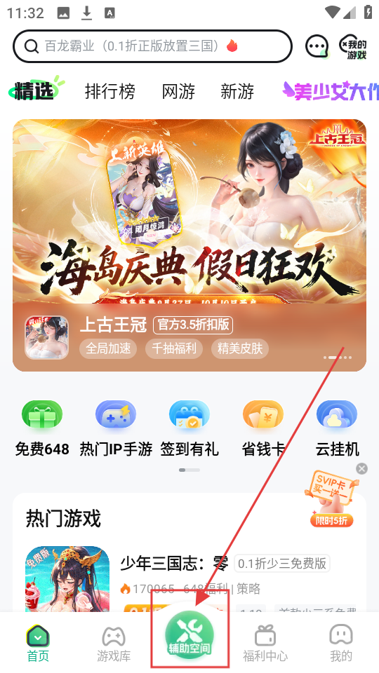 1、软件的首页给用户进行推荐各种热门游戏。