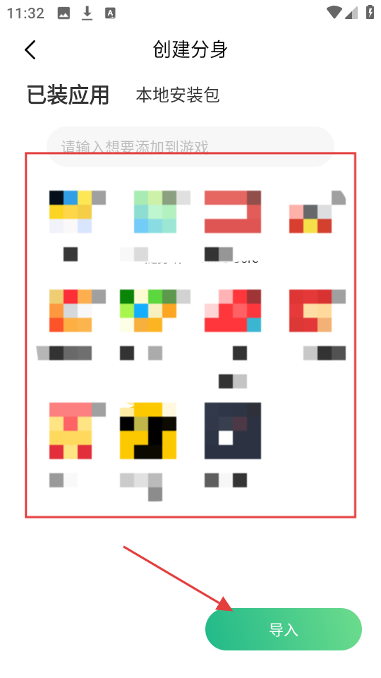 3、在创建分身页面,选择想要创建分身的已装应用,然后点击【导入】按钮,进行分身导入。