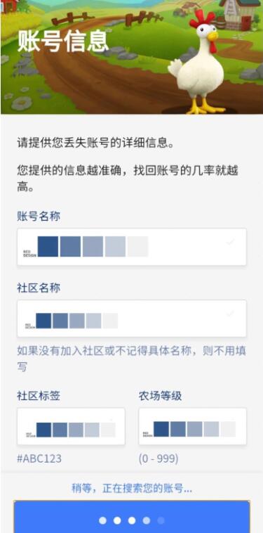 2、先把一切的资料先填进去 然后按下面蓝色完成 系统会自动搜索(图2) 当然 如果有人和我一样明明一切资料都对了 还是无法找到账号 就要联络人工客服 这是第二个方法