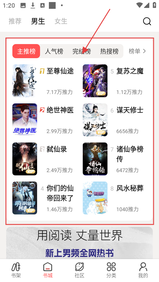 1、在书城页面,点击榜单中的书籍,如《绝世神医》,可进入书籍详情页啦。