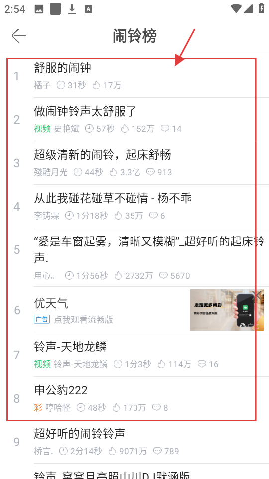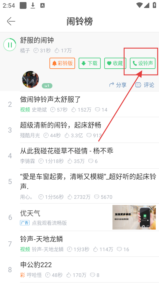 2、在闹铃榜中,挑选喜欢的闹铃铃声,点击进入铃声详情页面,准备设置为闹铃啦。