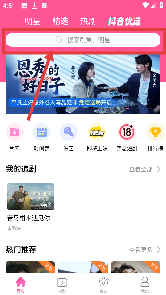 1、在应用首页,有搜索框,可输入想看的剧集或明星,方便快速查找内容呢。