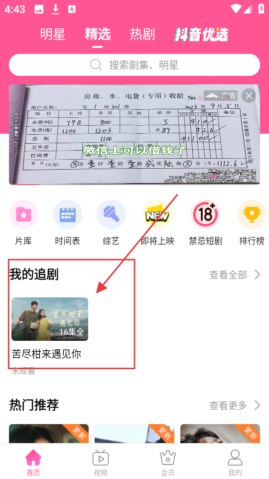 1、在应用首页,能看到【我的追剧】板块,里面有追过的剧集,点开喜欢的剧集超方便呢。