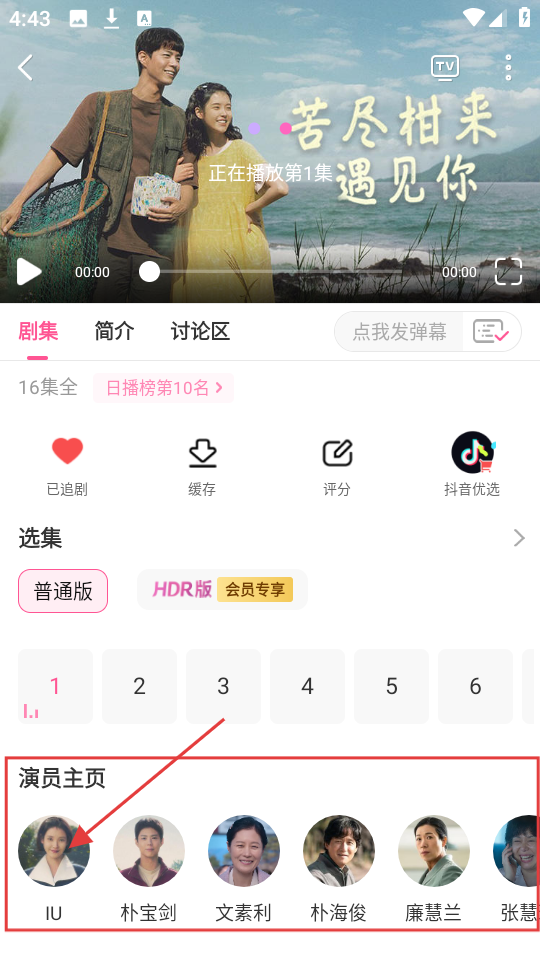 2、进入剧集页面,能看到【演员主页】板块,里面有参演的演员,可点击喜欢的演员进入主页哟。
