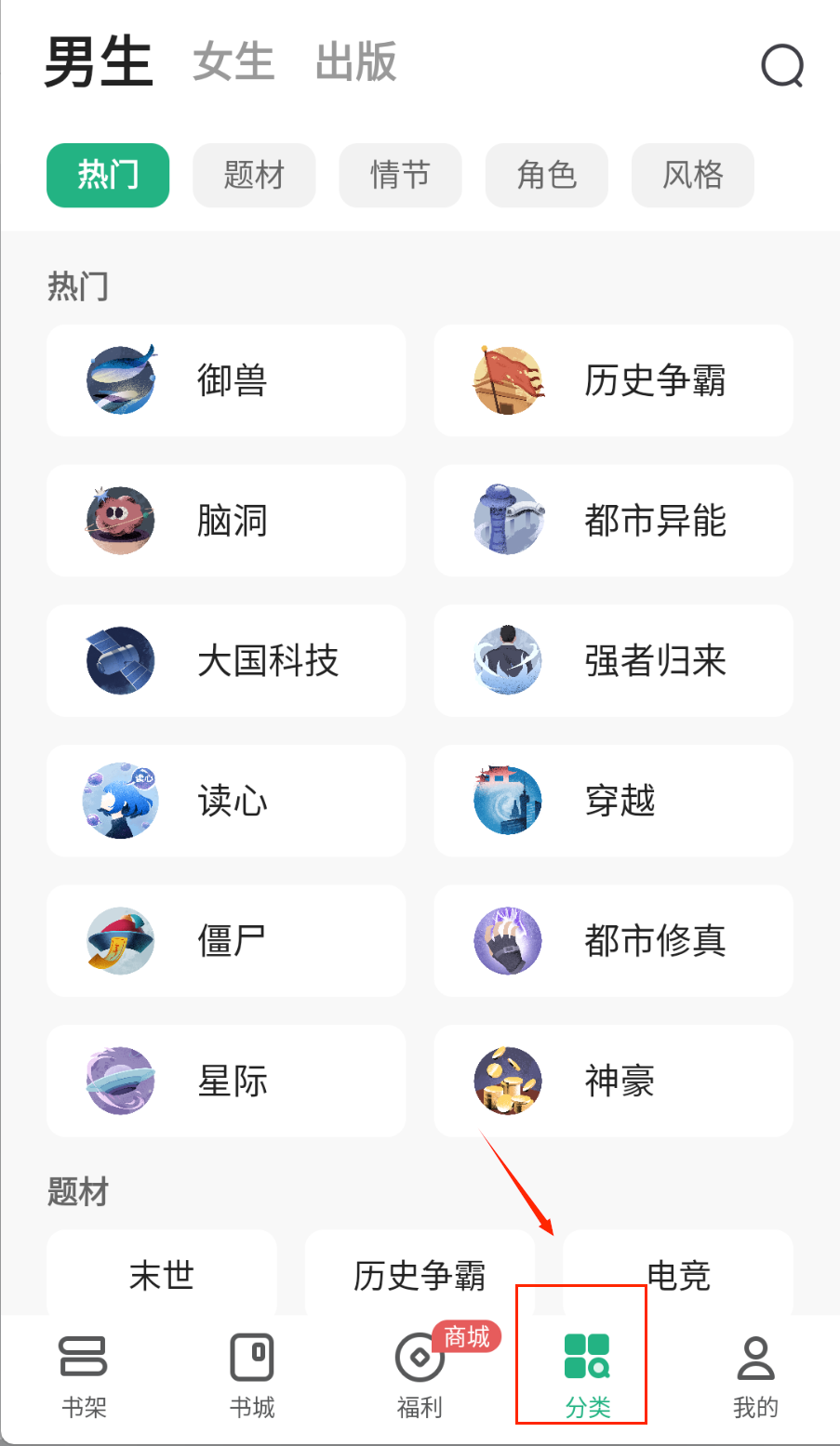 3、高效找书依赖分类导航,熟悉“男生/女生”频道差异和“热门”题材如强者归来、脑洞等的特点,就能快速定位优质内容,节省浏览时间哦。