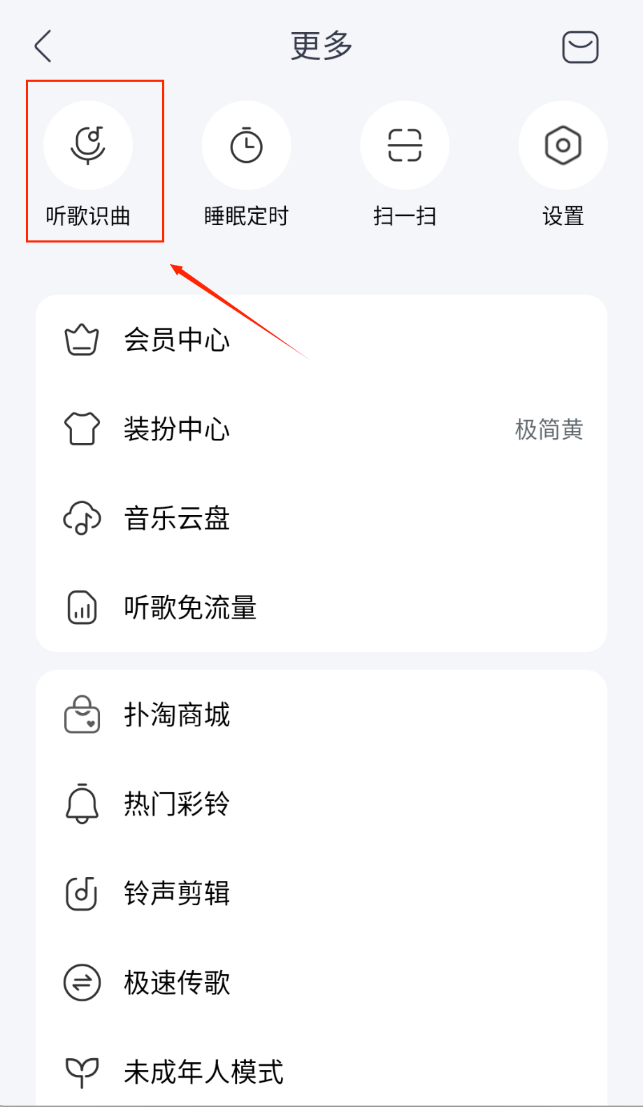 3、听歌识曲功能很实用,听到好听的歌但不知道歌名时,点击识别按钮就能马上找到歌曲信息,还能直接收藏到歌单里。