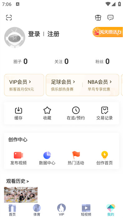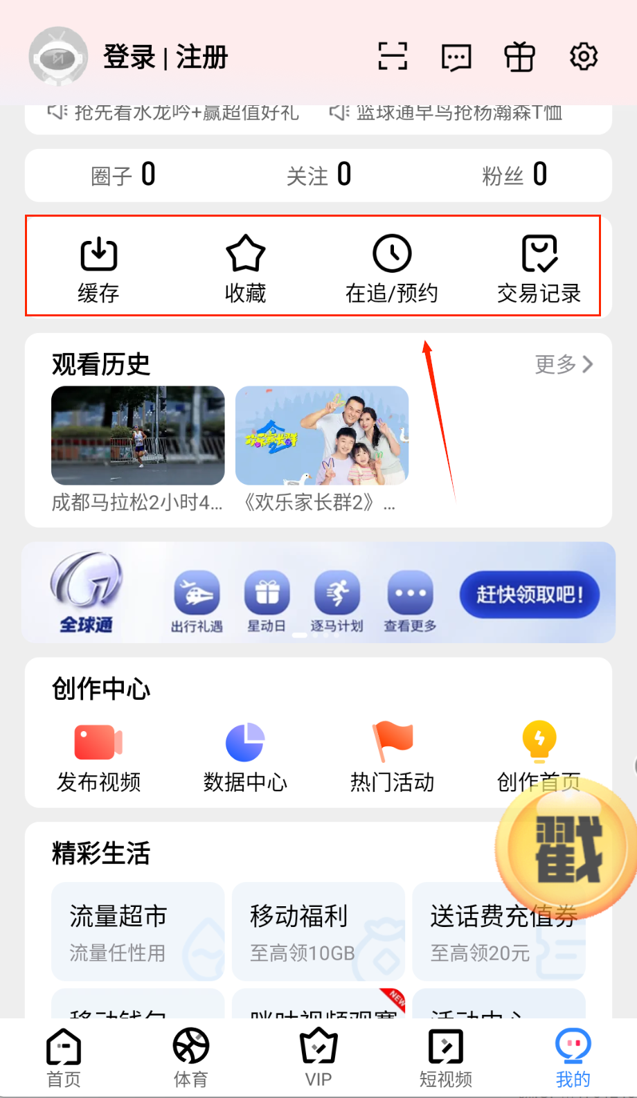 4、个人中心的“观看历史”能回溯记录,“缓存”功能可提前下载视频,离线也能看,通勤路上随时刷剧看比赛,超级方便啦。