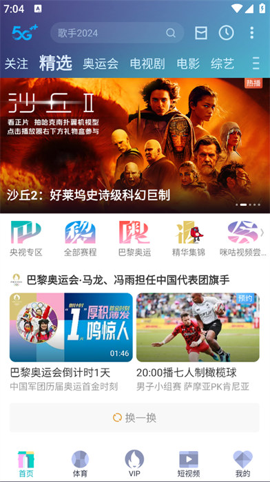 奥运会、中超、NBA、UFC、《沙丘2》、《歌手2024》等众多精彩内容等你来看,海量热门赛事直播、精彩影视剧集锁定咪咕视频