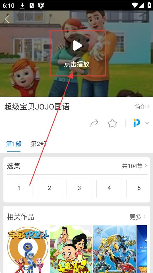 4、进入动画播放页,点击【点击播放】按钮,就能观看《超级宝贝JOJO》啦。