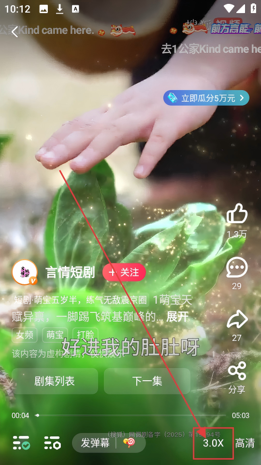4、选好倍速,比如【3.0x】,短剧就会按照所选倍速播放,方便调整观看节奏啦。