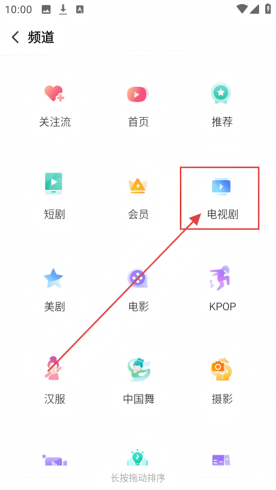 2、在频道选择界面中,找到【电视剧】选项并点击,进入电视剧频道。
