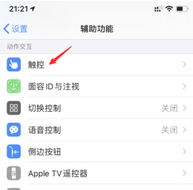 4、我们也能在手机设置上进行操作的哦!点击打开手机设置中的辅助功能页面,点击选择“触控”。