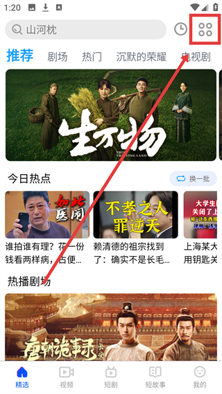 1、在平台首页,点击右上角分类图标,可进入分类页面,准备筛选影视内容啦。