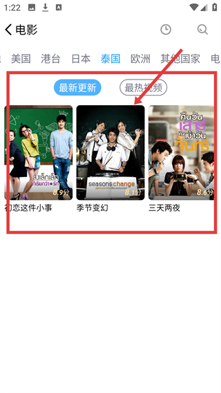 4、以泰国电影为例,选择泰国地区后,可看到《初恋这件小事》等泰国电影,点击即可查看影片详情并观看哦。