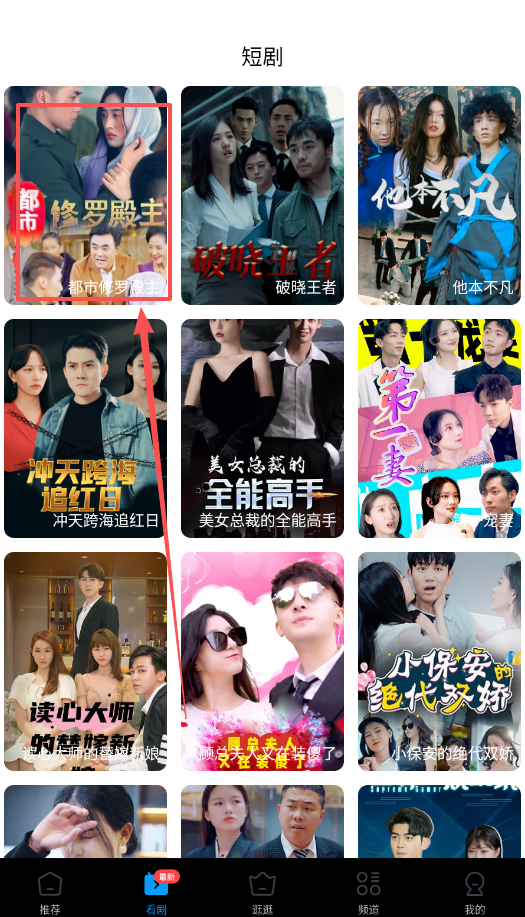 3、短剧是特色内容之一,在首页能看到“都市修罗殿主”等作品集中展示,点开一部就能直接观看。