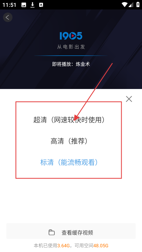 4、选择好画质开始下载后,进入离线缓存页面,就能看到《炼金术》正在缓存的状态啦,等待缓存完成即可。