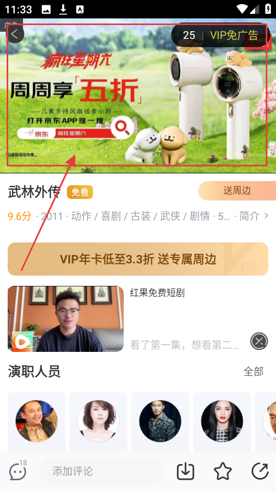 4、进入电影详情页后,可查看电影相关信息,也能等待广告结束或开通VIP免广告,开始观看电影啦。