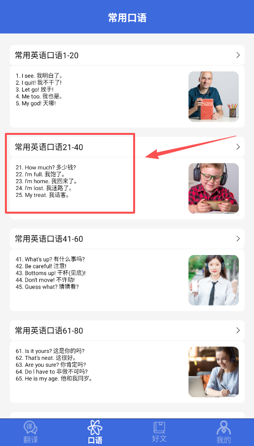 2、系统化学习口语请切换至对应标签,例句已按单元分组,便于逐步掌握。