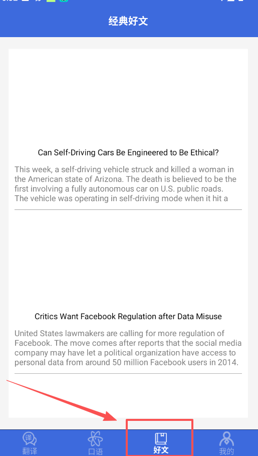 3、拓展阅读素材在好文板块,选取的文章长度适中,适合利用碎片时间阅读。