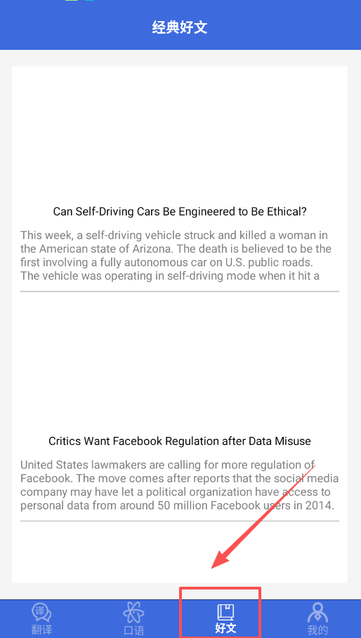 3、接着,去“好文”区逛一逛,文章都是节选的,比较短,适合每天读一篇培养语感。