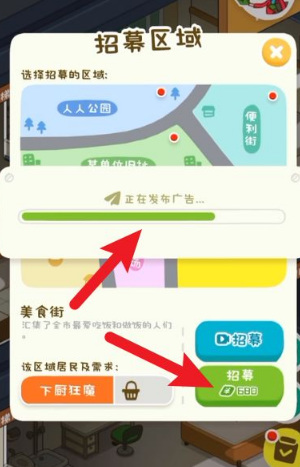 3.在招募区域选择好地区,并点击招募。