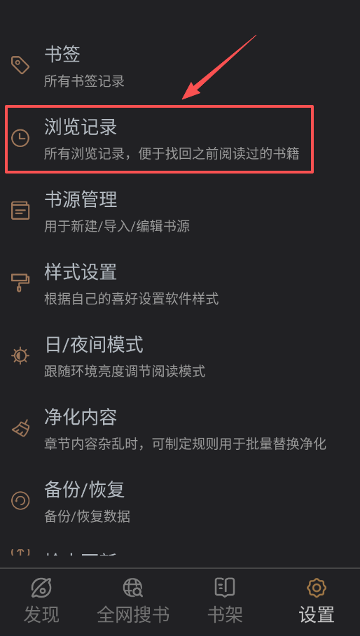 3、担心忘记阅读进度的话,系统会自动在书签和浏览记录中保存你的阅读历史,方便随时找回。