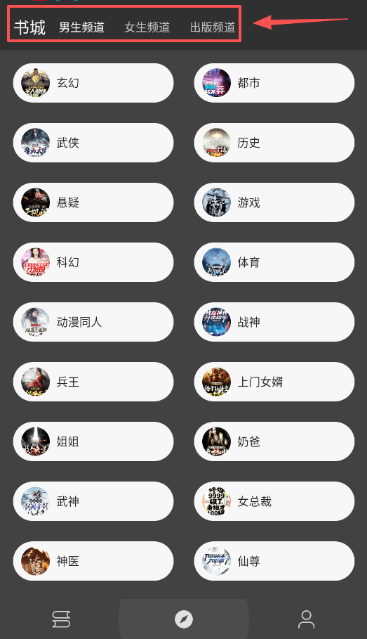 1、第一步是探索书城,你可以根据频道和详细分类,慢慢发现自己喜欢的读物类型。