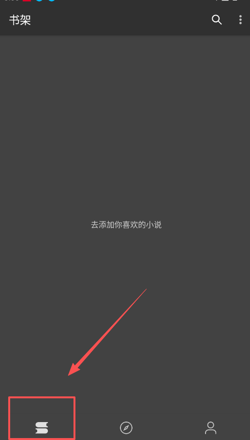 3、再看“书架”功能,这里会存放你收藏和正在读的书,如果空空如也,就按提示去书城添加喜欢的小说吧。