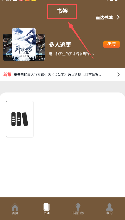 一、启动软件后,你的阅读基地是“书架”页面,这里陈列着你正在追读的小说和可能喜欢的“优质”推荐。