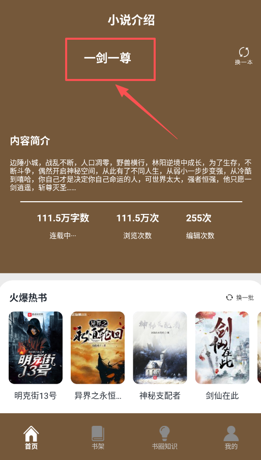 二、选中一本书后,例如一剑一尊,你会进入介绍页面,这里的内容简介和关键数据是决定是否阅读的重要参考。