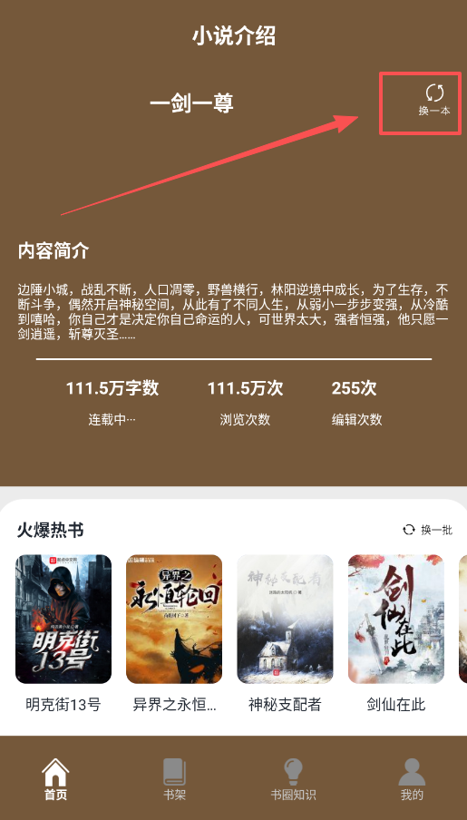 二、阅读过程中,书籍详情页提供了关键决策信息,直接使用详情页的“换一批”功能,系统会即时推荐明克街13号等同类型热门作品。
