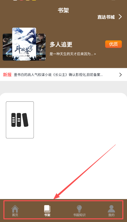 一、软件主要通过底部导航栏操作,共有首页、书架、书圈知识和我的四个入口。
