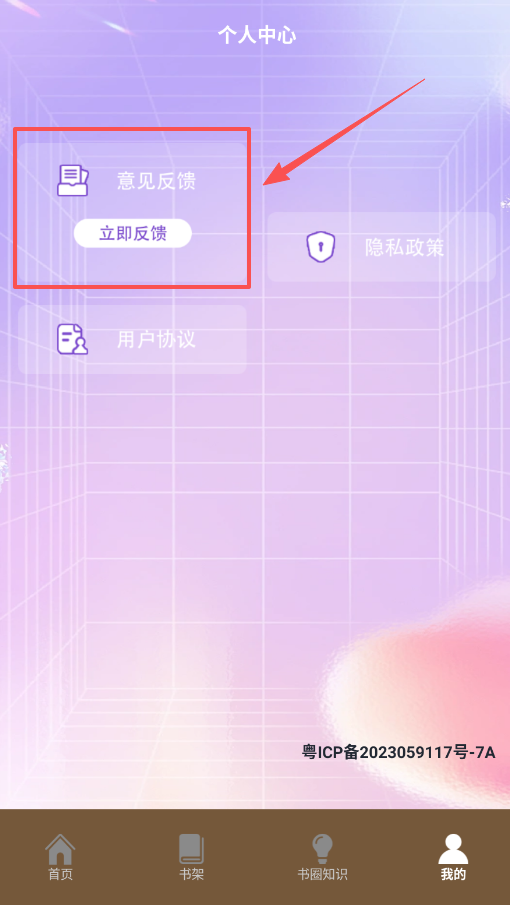 四、所有个人化管理和设置都在“我的”页面。在这里你可以进入个人中心,进行意见反馈、查阅隐私政策等操作。