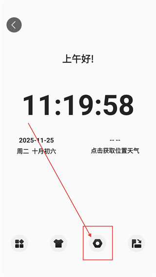 2、进入时钟的功能页面后,点底部的设置图标,能进入设置界面,调整时钟相关的配置参数啦。