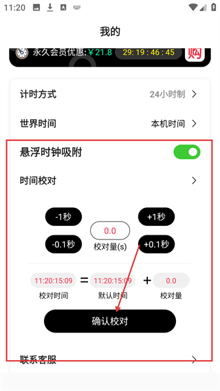 4、进入时间校对界面后,调整校对量数值,再点【确认校对】按钮,就能完成时间的精准校准啦。