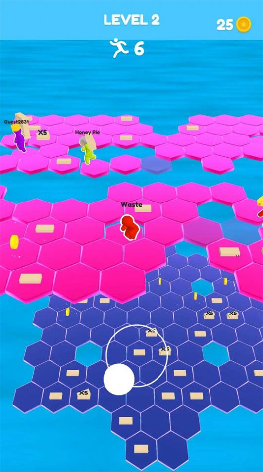 《六角坠落英雄》这款游戏里我们将会与众多的对手一起开始趣味的冒险,开始自己的坠落挑战,在悬空的格子上面生存,格子在被玩家踩中后将会消失,我们要辗转腾挪在不同的格子之间,游戏中格子有好几层,但要是直接掉落进虚空就会导致游戏的失败,这是非常关键的事情,看看谁是最后的赢家吧。
