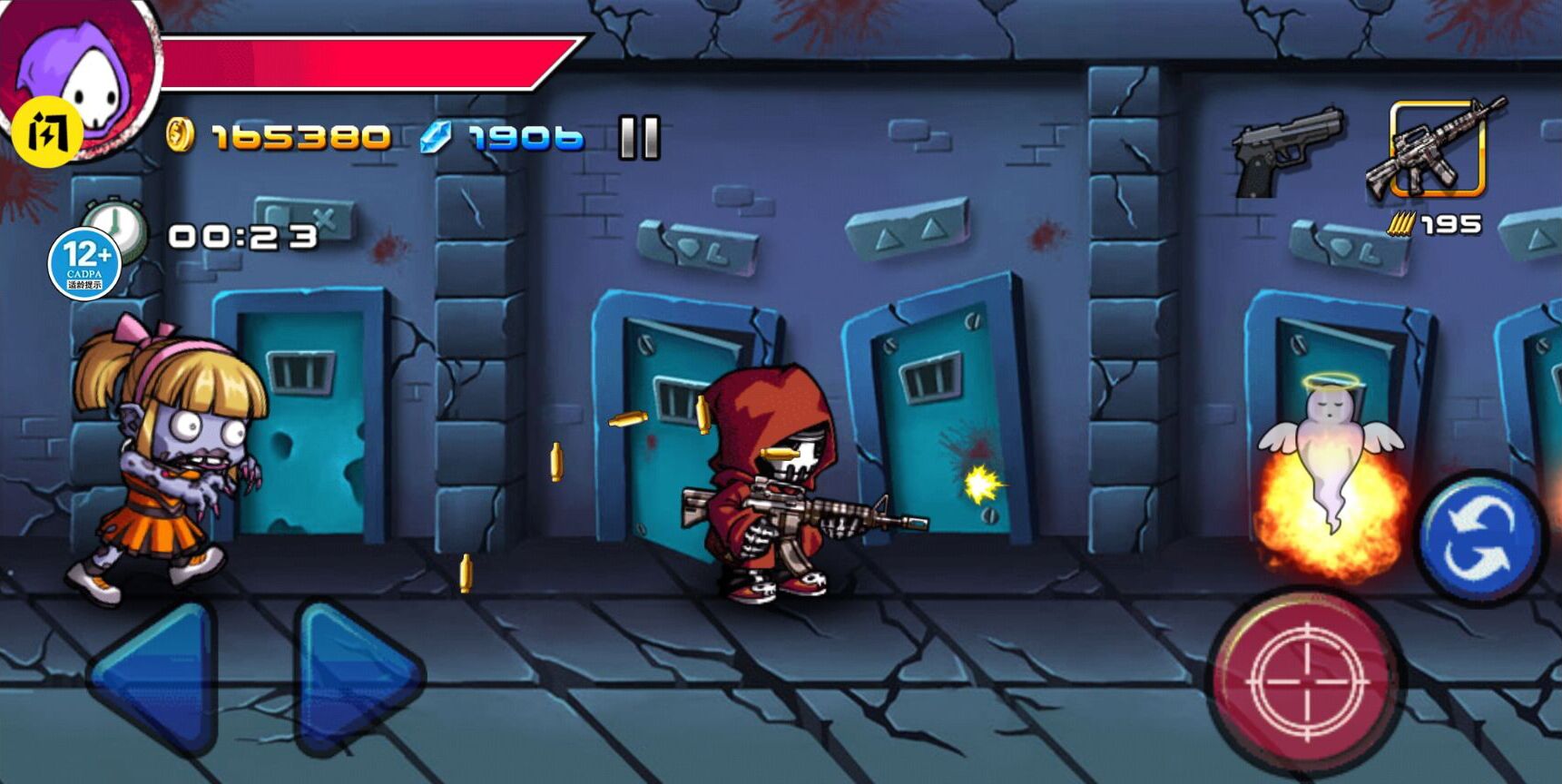 2、操作简单,展现玩家技巧操作,移动时射击可以有更好效果,这些僵尸熊孩子一直在作弄攻击你。