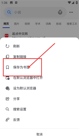 3、在弹出的菜单里点【保存为书签】选项,就能把当前搜索页面存为书签,方便后续快速访问啦。