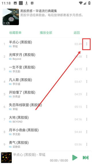 2、进入歌单详情页后,找到目标歌曲,点击右侧三点按钮可打开操作菜单啦。
