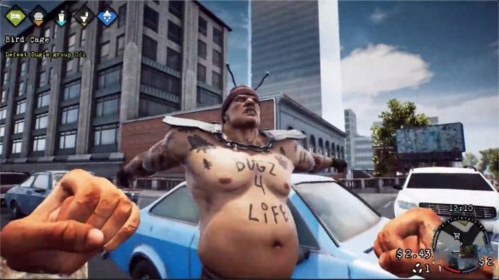 介绍了玩家能跟他人搏斗,有趣的是打赢了还能往败者身上尿尿,这倒是和游戏调性一直,内在游民魂都要被勾起来了。本作系统也完善了许多,画面上方有睡眠、食物、饮料、如厕与洗澡等UI,玩家想要生存似乎离不开这五项需求。