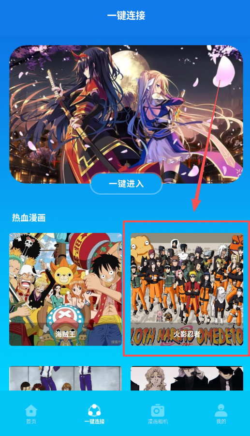 3、如果你已经有心仪的作品,比如火影忍者,那么直接去一键连接板块会更高效,那里有整理好的一键进入列表,能让你省去查找的步骤。
