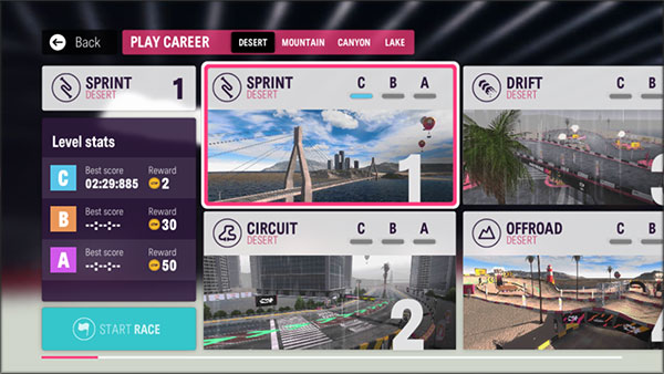 1、拉力地平线的玩法设计非常简单直观,玩家只需要选择自己喜欢的车辆和场景。
